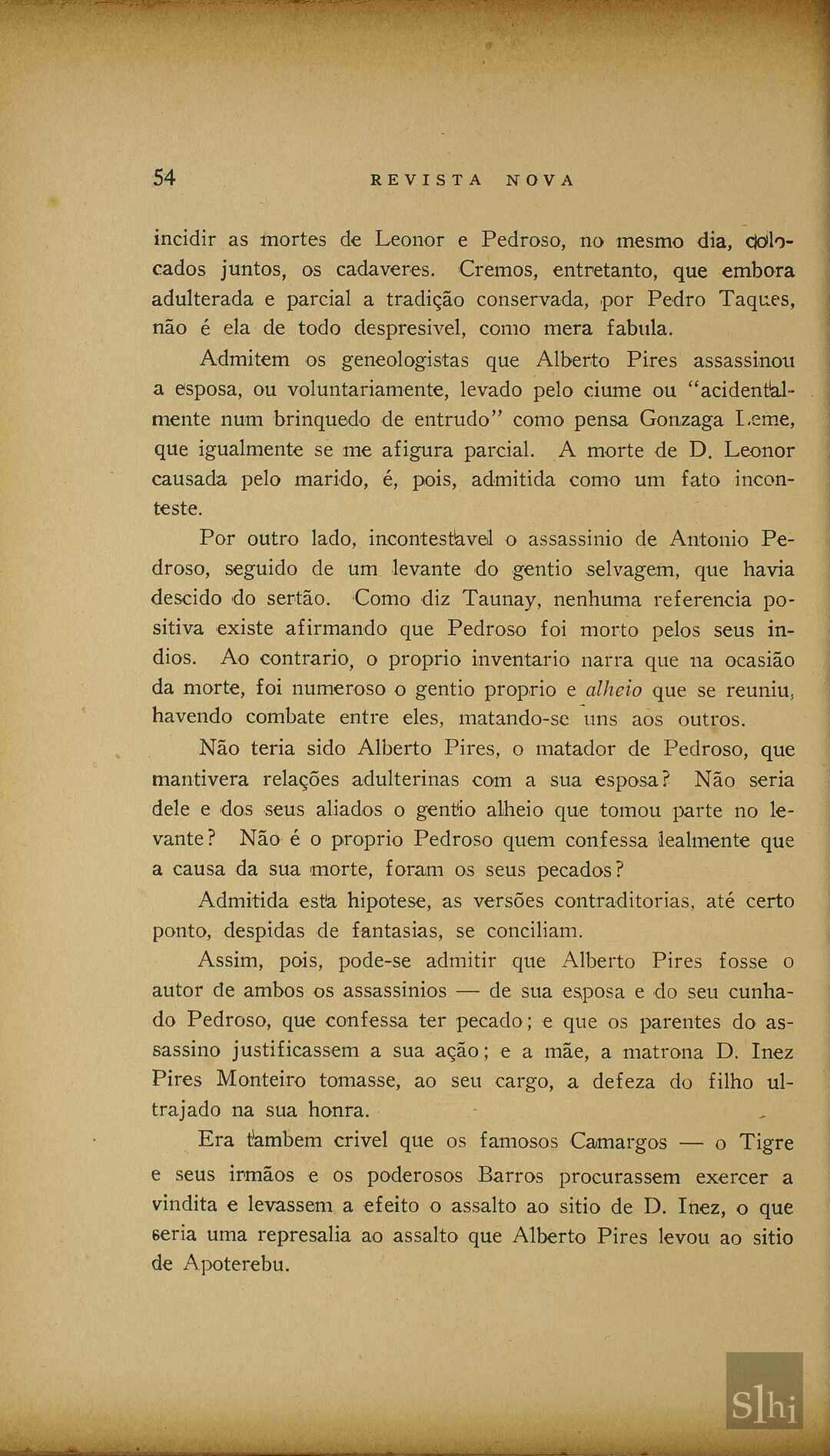 Descrição físicapp. 44-76SumárioEnsaio sobre o famoso caso da guerra entre Pires e Camargos, ocorrida no século XVI em São Paulo, ocasionada por interesses diversos de ambas as famílias.NotasDos "Episodios do Passado Paulista".ConceitosAssuntosNomes Singulares CitadosNomes Colectivos CitadosObrasNomes Geográficos