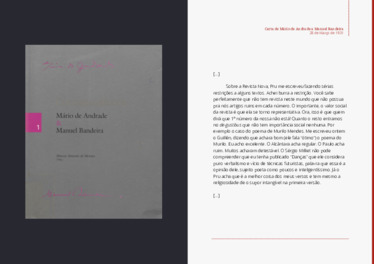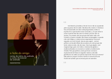De Mário de Andrade a Carlos Drummond de Andrade, 18 de Março de 1931Mário de Andrade in A lição do amigo: cartas de Mário de Andrade a Carlos Drummond de Andrade, anotadas pelo destinatário, São Paulo, Companhia das Letras, 2015, pp. 244-245.