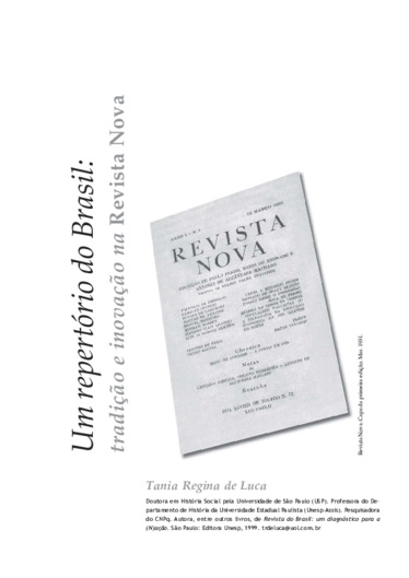 Um repertório do Brasil: tradição e inovação na Revista Nova (1931-1932)Tania Regina de Luca, ArtCultura, Uberlândia, vol. 8, N.º 13, Jul.-Dez. 2006, pp. 97-107.