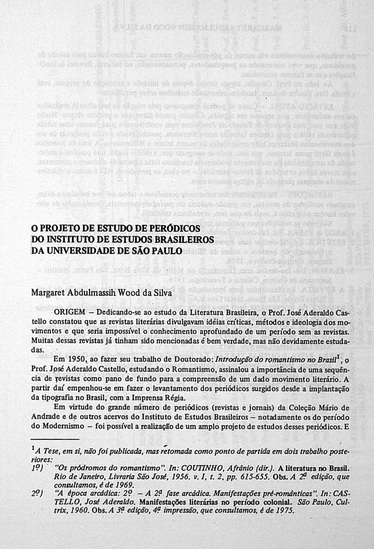 O Projeto de Estudos de Periódicos do IEB da USPMargaret A. W. Silva, Revista do IEB, São Paulo, N.º 21, 1979, pp. 117-122.